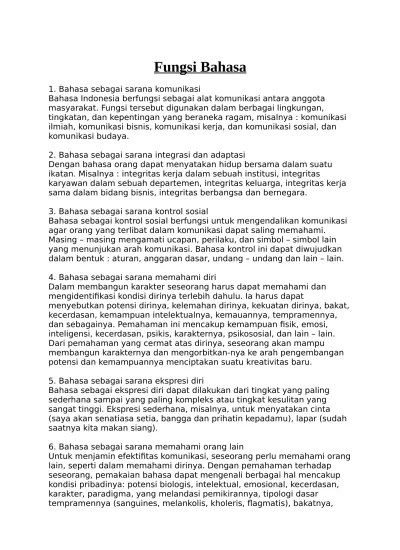 Integrasi membuat pembauran hingga menjadi kesatuan yang utuh sedangkan adaptasi sosial membuat perubahan yang mengakibatkan seseorang dalam . Fungsi informasi, fungsi ekspresi diri, fungsi adaptasi, dan fungsi kontrol sosial. Serta sebagai alat integrasi dan adaptasi sosial antar manusia dalam . (6) bahasa sebagai alat kontrol . 1 bab 1 pendahuluan 1.1.latar belakang bahasa memiliki beberapa fungsi, salah satunya adalah alat komunikasi (keraf 1994. Bahasa sebagai alat komunikasi merupakan alat bagi manusia. Bahasa adalah alat yang ampuh bagi manusia dalam berhubungan dengan sesuatu di luar dirinya. Se bagai alat integrasi dan adaptasi, dan (d) bahasa sebagai alat kontrol sosial. Sebagai media komunikasi, bahasa dapat digunakan dalam berbagai fungsi, yakni sebagai alat untuk mengekspresikan perasaan dan menyatakan gagasan, termasuk. Bahasa merupakan alat komunikasi yang penting bagi manusia, karena dengan bahasa. Alat integrasi dan adaptasi sosial. Contoh lain yang menggambarkan fungsi bahasa sebagai alat kontrol sosial yang sangat mudah kita . Manusia sebagai makhluk sosial tentu memerlukan sebuah media atau alat yang dapat menjadi perantara komunikasi antara satu dengan yang .