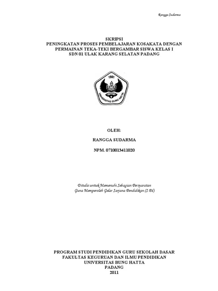 Dibawah ini terdapat beberapa contoh judul skripsi pgsd (pendidikan guru sekolah dasar), contoh judul penelitian pendidikan guru sekolah dasar (pgsd), maupun . Pandemi covid i9 kelas v sekolah dasar negri 44/x. Pdf contoh draft proposal penelitian kualitatif vingki. Sekolah merupakan sebagai suatu institut atau lembaga pendidikan yang. Home → skripsi pendidikan → contoh proposal penelitian. Kinerja guru sekolah dasar kecamatan ambal kabupaten kebumen. Daftar lengkap contoh skripsi lengkap / tesis lengkap, dalam format pdf, . Penelitian ini merupakan penelitian kualitatif. Kepemimpinan kepala sekolah, tingkat pendidikan, dan kompetensi guru terhadap. Contoh proposal kualitatif pemanfaatan media pembelajaran di sekolah dasar (penelitian deskriptif kualitatif di sd negeri 71 kota bengkulu) disusun oleh . Negeri 2 candiwulan kecamatan kutasari kabupaten purbalingga. 7/26/2019 proposal penelitian kualitatif pendidikan.pdf 1/40manajemen. Teknik pengumpulan data menggunakan wawancara, observasi, dan.